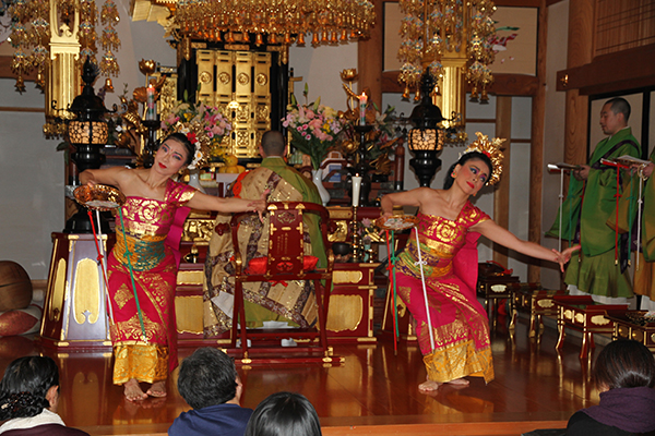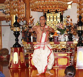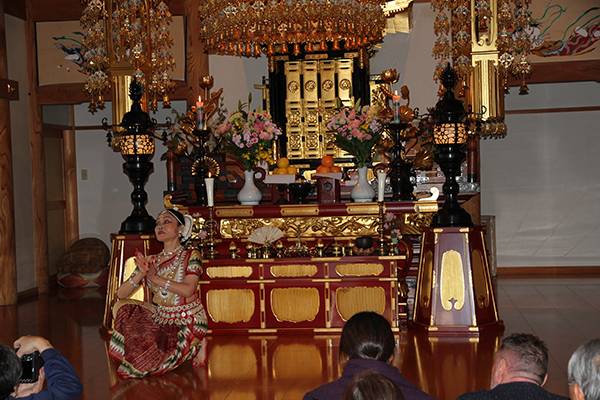 今回は厳かな天台声明の後、華麗なバリ舞踊、力強いインド・オリッサ州の舞踊を奉納。